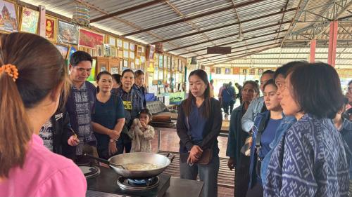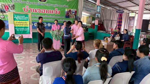 วันที่ 2 กิจกรรมศึกษาดูงานประสบการณ์การพัฒนาวิถีชีวิตเศรษฐกิจพอเพียงจากหมู่บ้านเศรษฐกิจพอเพียงต้นแบบ โดยนำผู้แทนครอบครัวพัฒนา ศึกษาดูงานการขับเคลื่อนการดำเนินงานพัฒนาหมู่บ้านเศรษฐกิจพอเพียงต้นแบบ การบริหารจัดการชุมชนที่มีประสิทธิภาพ การดำเนินงานศูนย์เรียนรู้และขับเคลื่อนปรัชญาของเศรษฐกิจพอเพียง ณ บ้านจอมแจ้ง ตำบลสีกาย อำเภอเมือง จังหวัดหนองคาย